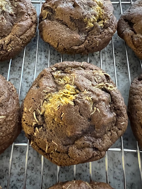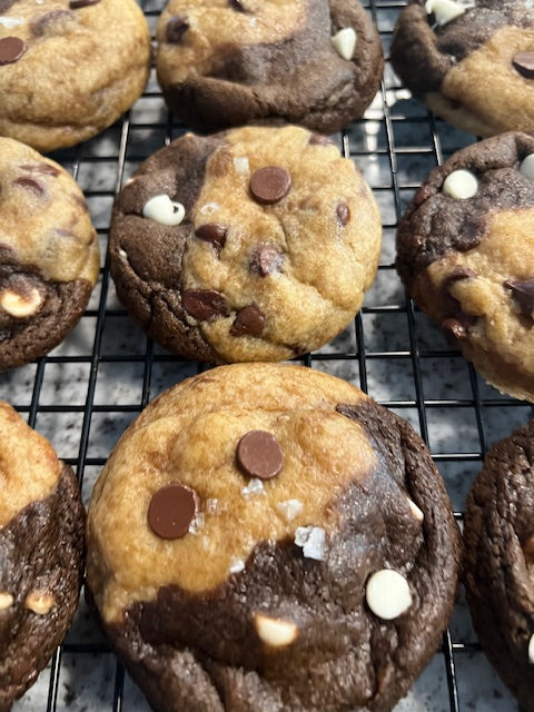 Combination of vanilla and cocoa mixed in with both white and semi sweet chocolate chip cookie that will brighten up anyones days!