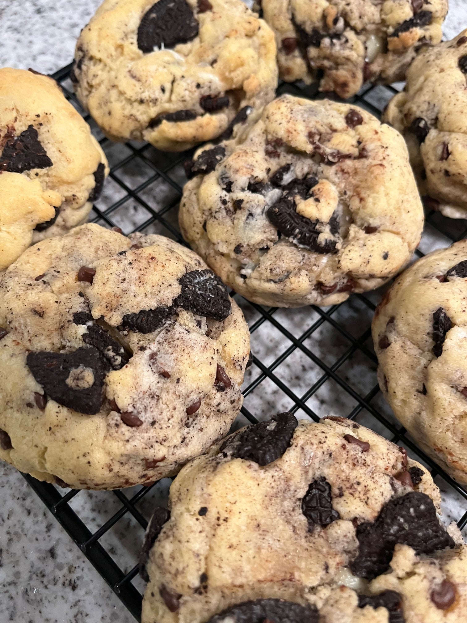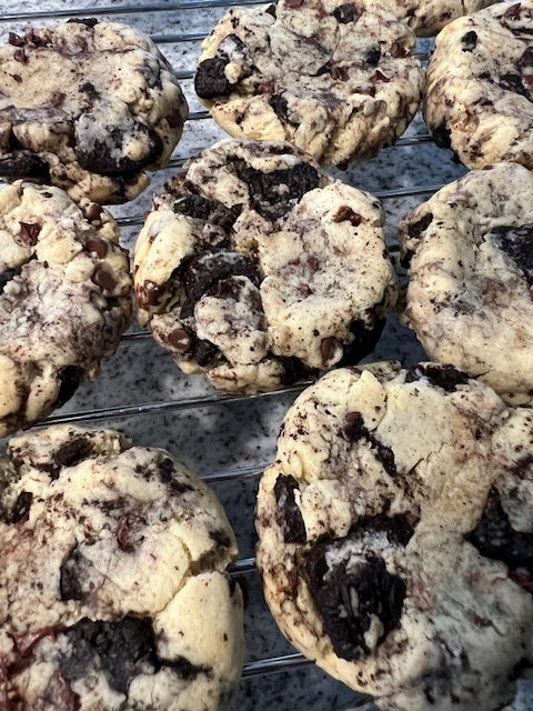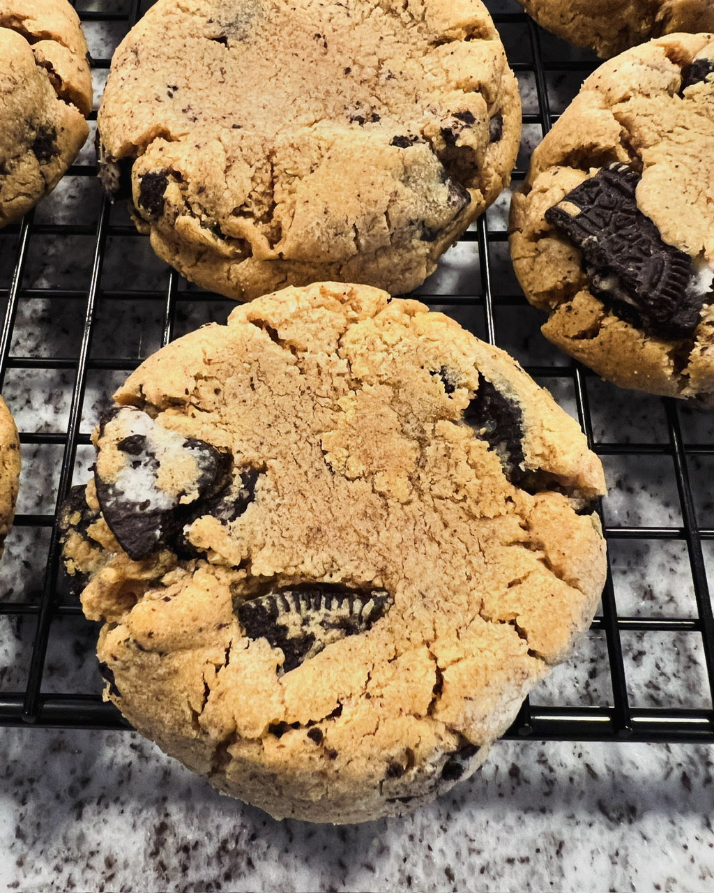 Love Oreo cheesecake? Try our new oreo cheesecake cookie which are loaded with chopped up Oreos and stuffed with a cheesecake filling!