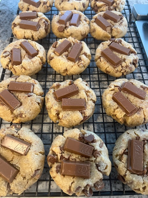 Calling all Kit Kat lovers! Presenting to you a Kit Kat infused cookies with pieces crushed into the cookie and layered on top.