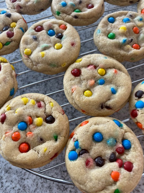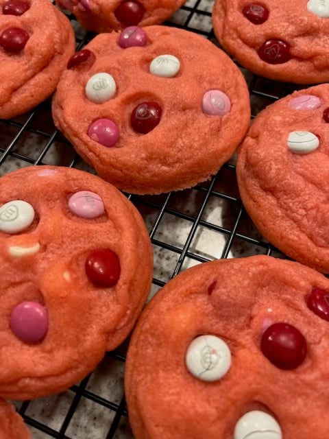 Looking for a fun Valentines Day cookie? Try our beautiful pink sugar cookies with white chocolate chips and M&Ms!