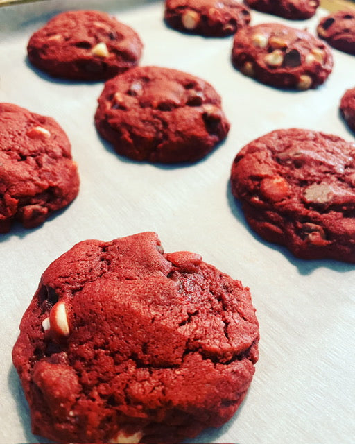 Dive into the most delicious and decadent triple chocolate cookies. It's a mixture of dark chocolate coating, with milk chocolate chips and stuffed with white chocolate!