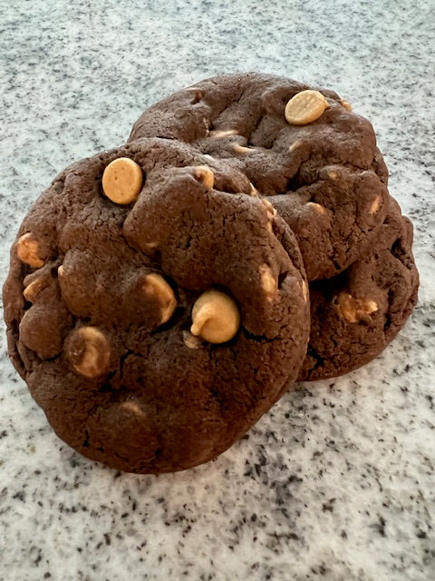 Rich, silky, chocolate chip cookies with huge pieces of Reeses peanut butter cups laid across the top to give you that candy bar & cookie combo that's hard to pass up!